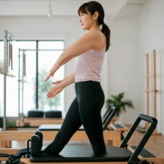 マシン(リフォーマーなど)を使うことで、初心者の方でも正しいフォームを保ちやすく、負荷の調整も可能。より効率的に筋肉を整えることができます。