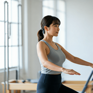 マシン(リフォーマーなど)を使うことで、初心者の方でも正しいフォームを保ちやすく、負荷の調整も可能。より効率的に筋肉を整えることができます。